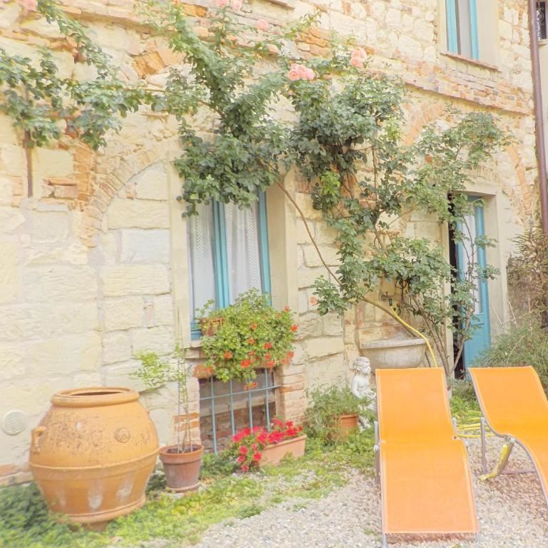In an ancient coaching inn with timeless frescoes and spaces in the village center, you may wish to choose a wide double room with a private bathroom only a few steps away  and a breathtaking view of the surrounding hills. A shared living room, an inner courtyard and a covered patio are also available.